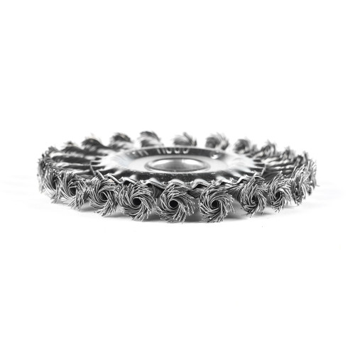 круглая проволочная щетка для УШМ для снятия лака; краски; зачистки ржавчины; Наружный диаметр: 125мм; посадка: 22.23мм; витая проволока; высокая производительность; грубая зачистка