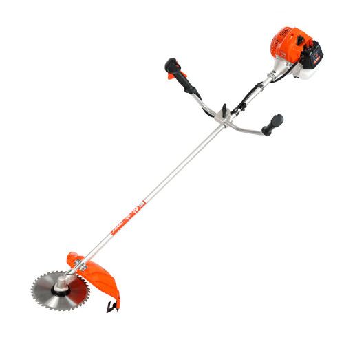 - Комплект поставки: Двигатель в сборе с рукояткой; Трансмиссионный узел в сборе; Рукоятка; Защитный кожух с крепежной планкой; Набор ключей для сборки и обслуживания (опционально); Набор креплений для сборки; Комплект для установки триммерного ножа; Емкость для приготовления топливной смеси; Триммерная катушка; Ножи 40Т и 3Т; Ранцевый ремень; Инструкция